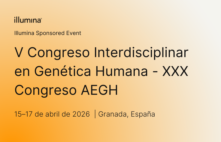 Únete a nosotros en el stand de Illumina este año en el V Congreso Interdisciplinar en Genética Humana - XXX Congreso AEGH y descubre las últimas innovaciones para la genómica avanzada.