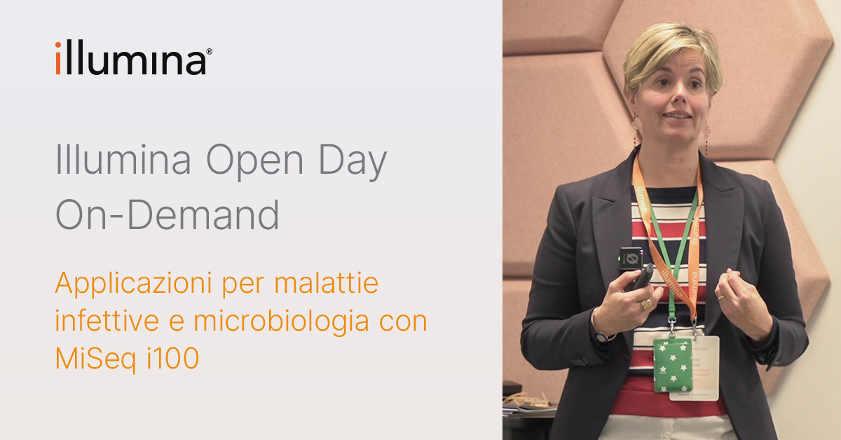 Questa sessione offre una panoramica su come le applicazioni per le malattie infettive e la microbiologia sulla serie MISeqᵀᴹ i100 possono supportare la sorveglianza genomica per la gestione delle epidemie, il controllo delle infezioni associate all'assistenza sanitaria (HAI), la lotta alla resistenza antimicrobica (AMR) o semplicemente per ottenere maggiori informazioni da i vostri campioni biologici utilizzando la metagenomica e la metatrascrittomica.