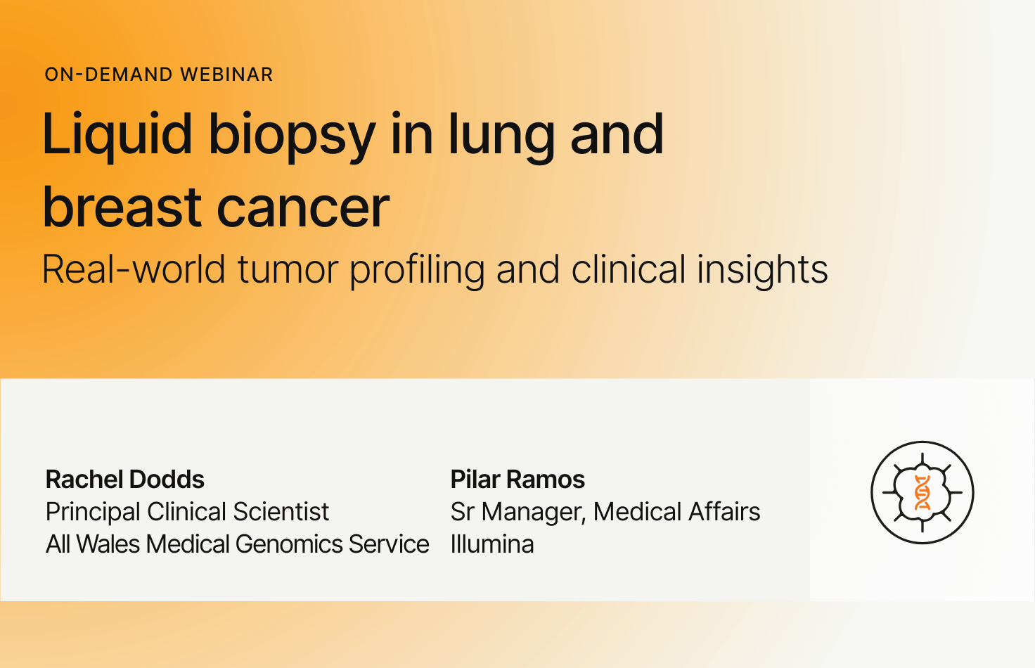 In this webinar, Pilar Ramos will provide an introduction to liquid biopsy comprehensive genomic profiling (CGP) and its role alongside tissue testing. Rachel Dodds will then share real‑world experience from Wales, including the integration of liquid biopsy into the lung cancer pathway and the use of ESR1 testing in blood samples from breast cancer patients.