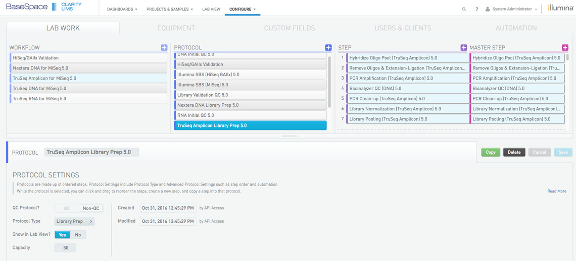 Clarity LIMS software is a laboratory information management system (LIMS) that powers efficient genomics sample and workflow management. Clarity LIMS (formerly known as BaseSpace Clarity LIMS) enables labs to track samples, streamline complex tasks, generate sample sheets, and catch poor quality samples before running them on a sequencing system.