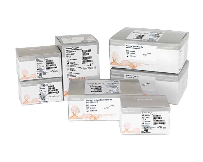 CE-marked and FDA-regulated IVD reagents , including index set A and size selection beads, for library preparation of genomic DNA isolated from 16 FFPE tissue samples. Purchase MiSeqDx, NextSeq 550Dx, or NovaSeq 6000Dx sequencing reagents separately.