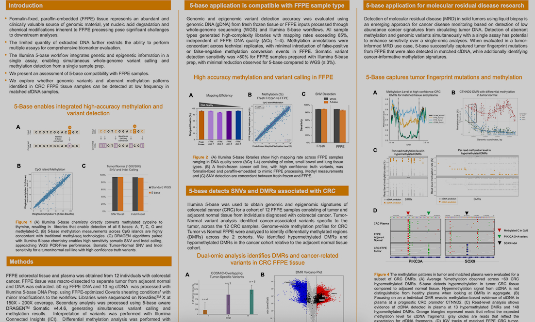 TAn evaluation of Illumina 5-base sequencing for integrated methylation and variant analysis in FFPE samples and its potential for tumor-informed MRD applications.